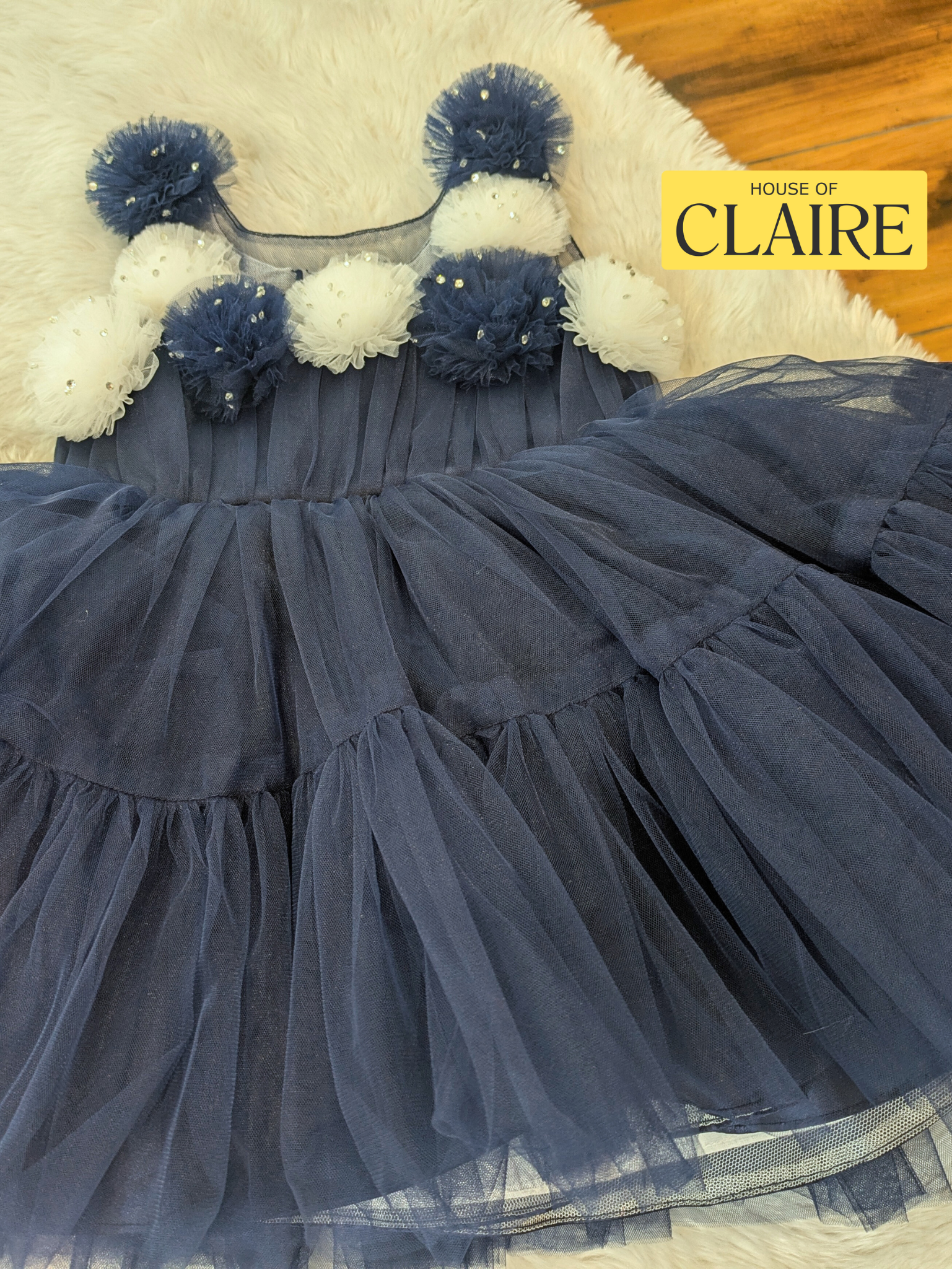 Fluffy Layered Navy Blue 1st Birthday Dress for Baby Girl – Party Wear