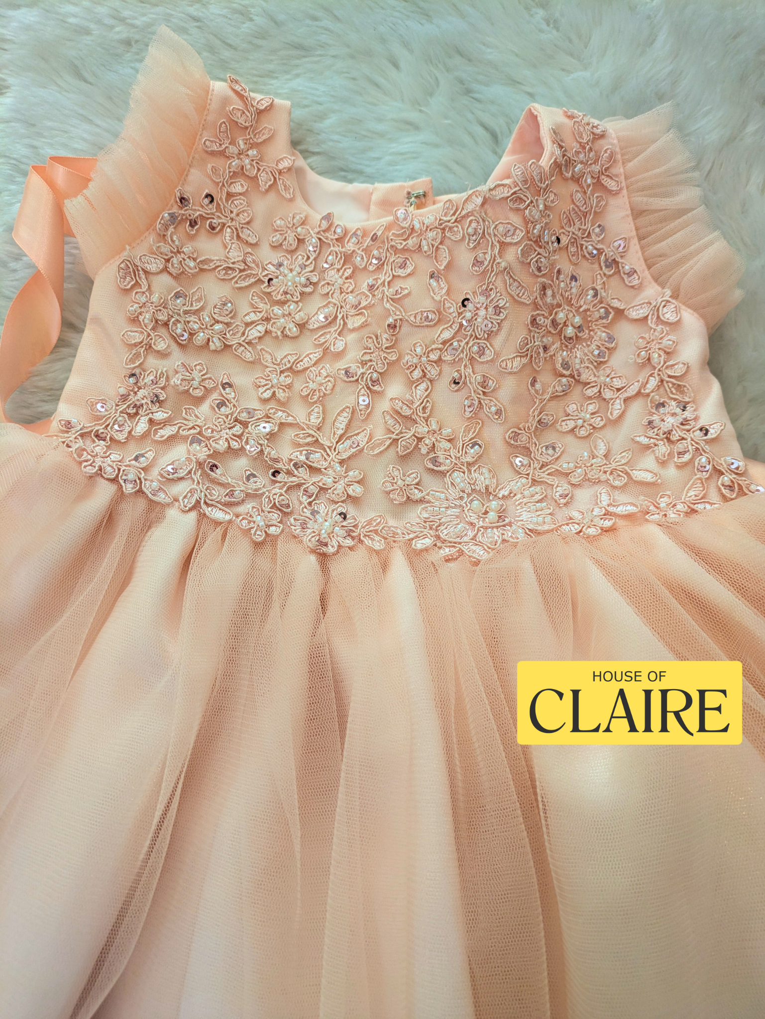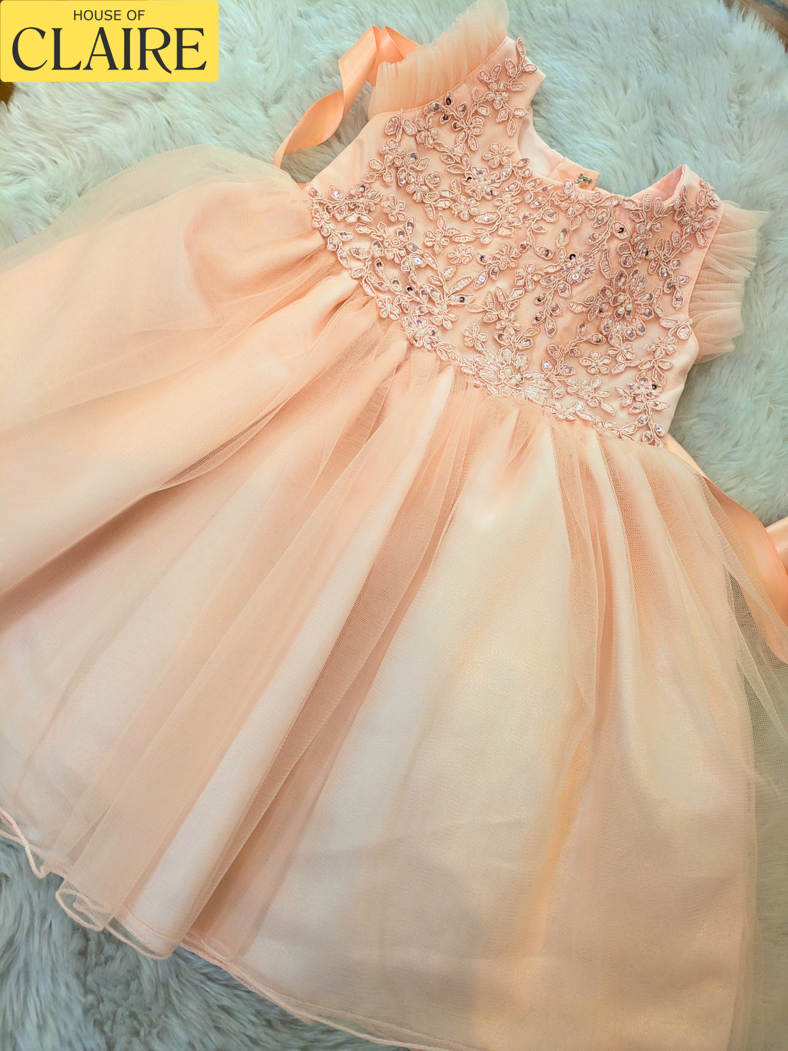 The pastel peach shade complements every skin tone, giving your baby girl a dreamy princess look.