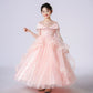 Peach Evening Fluffy Princess dress short sleeve Gown for Girls
